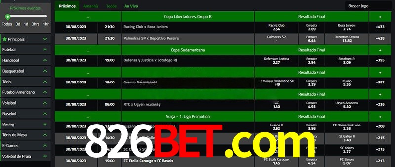 Esportes oferecidos pelas apostas esportivas da 826bet